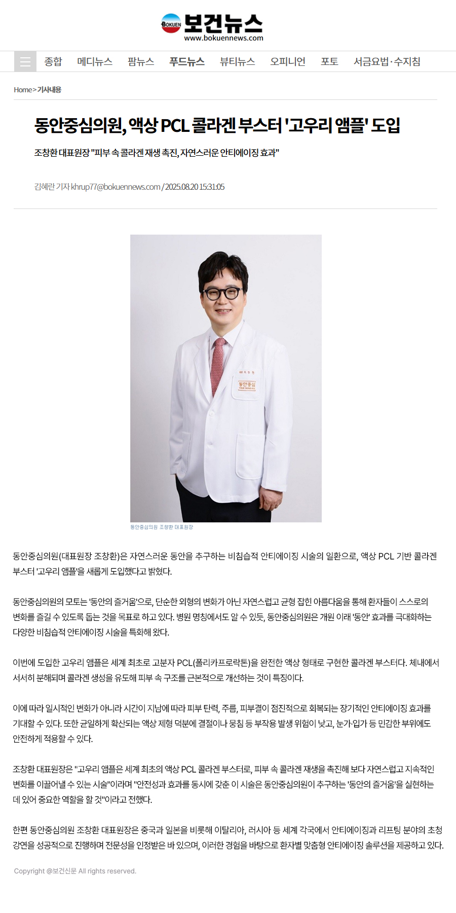제목 Dong-An Joongsim Clinic Introduces Liquid PCL Collagen Booster ‘Gouri Ampoule’