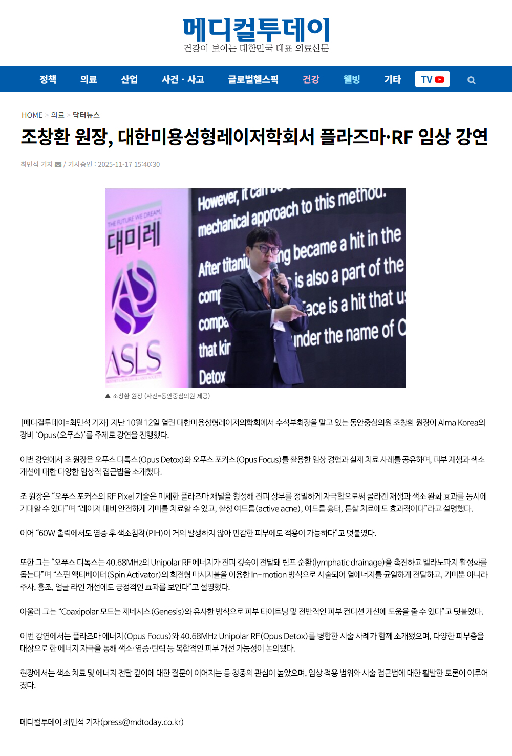 36 Dr. Chang-hwan Cho of Dong-An Joongsim Clinic Presents Plasma & RF Clinical Insights at the Korean.. 2025.11.11 19